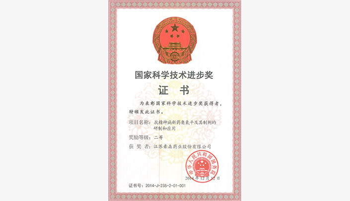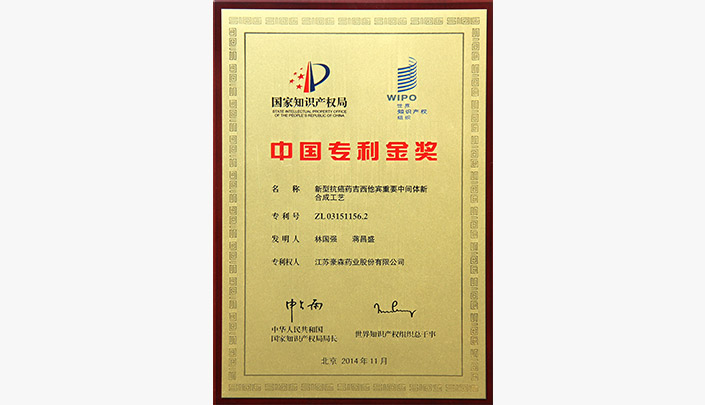 2014“新型抗癌药吉西他滨重要中间体新合成工艺”专利获得“中国专利金奖” “抗精神病新药奥氮平及制剂的研制和应用”获得国家科技进步二等奖 首个自主创新的1.1类新药迈灵达® (吗啉硝唑氯化钠注射液)上市,全球40年来首个硝基咪唑类抗厌氧菌创新药 -