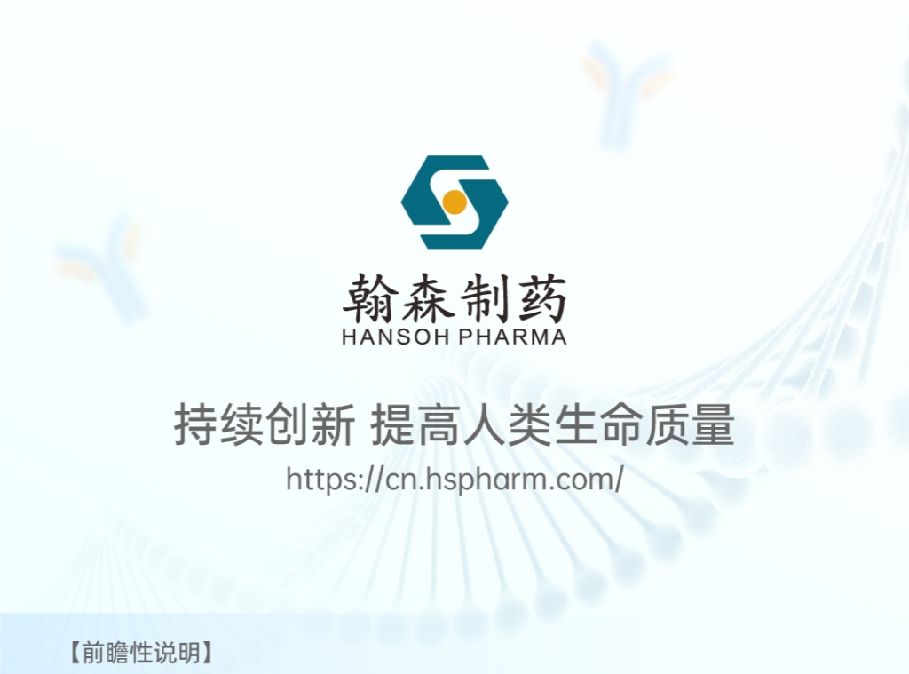 翰森制药是中国领先的创新驱动型制药公司,致力于通过持续创新改善人类健康,重点关注抗肿瘤、抗感染、中枢神经系统类疾病、代谢疾病及自身免疫性疾病等治疗领域。公司连续多年位居全球制药企业百强、中国医药研发产品线最佳工业企业前三强,是国家重点高新技术企业、国家技术创新示范企业,2019年6月在香港联交所挂牌上市(HK03692)。