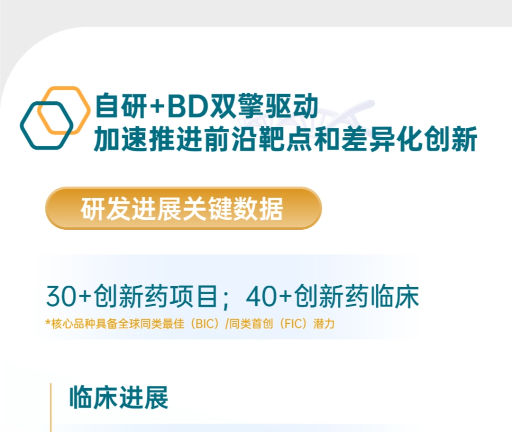 在“自主研发+BD合作”双擎驱动下,翰森制药加速差异化、全球化高质创新,不断强化靶点和产品组合,扩大专注治疗领域的领先优势,致力于成为一家全球化的创新型制药公司。