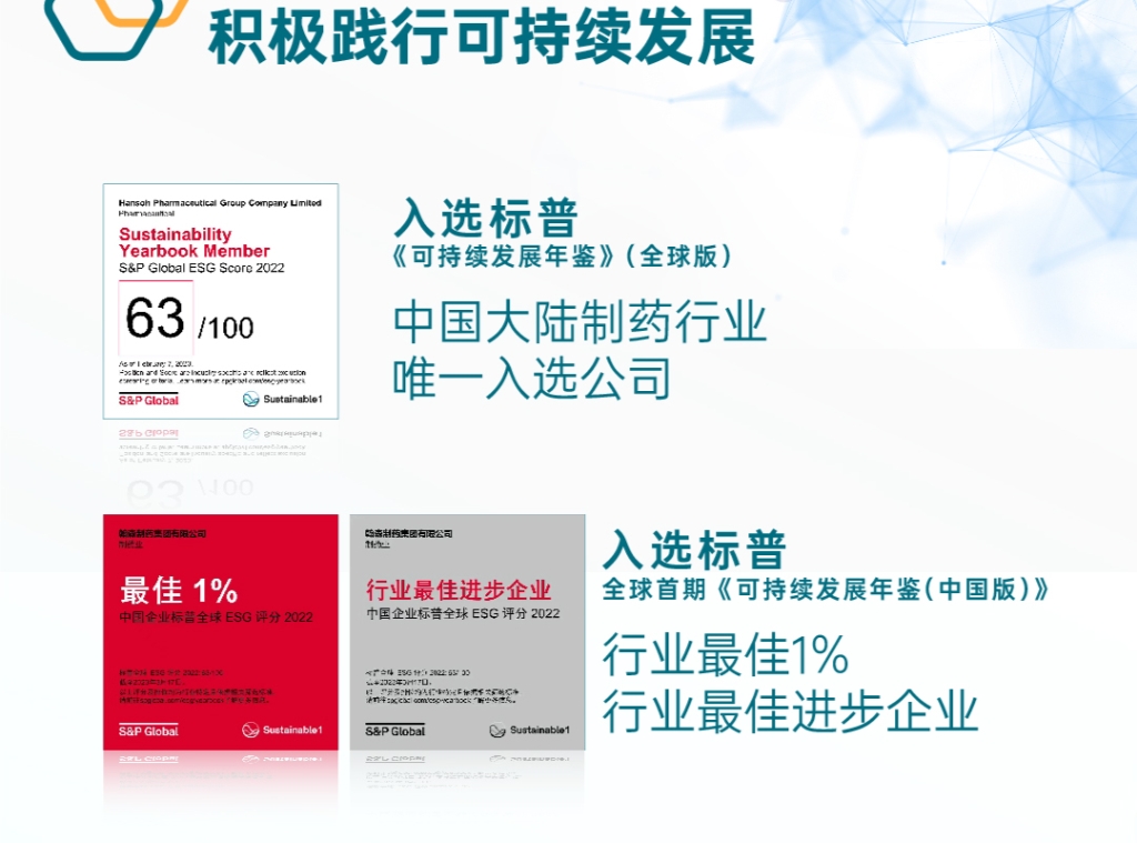 公司始终将企业管治、企业行为、产品安全与质量、普惠医患、人力资源发展、环境保护与社区进步作为关注重点和ESG管理的基础,持续致力于提高药物可及性以及临床需求紧缺领域的创新发展。