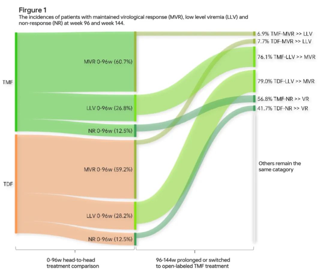 该研究是一项随机、双盲、非劣效性临床试验,在中国49家研究中心开展,共入组1,005例慢性乙肝患者,研究TMF对比富马酸替诺福韦二吡呋酯(TDF)144周疗效和安全性。