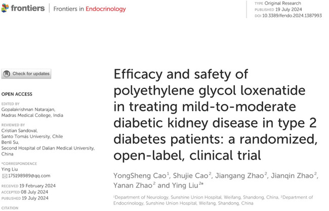 近日,翰森制药原研创新药孚来美®(聚乙二醇洛塞那肽注射液)治疗糖尿病肾病(DKD)患者的随机临床研究结果在Frontiers in Endocrinology(《内分泌学前沿》)杂志发表。数据表明,孚来美®疗效与达格列净相当且改善脂质水平更具优势。