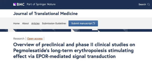 [1]Xiaoying Ma, Zhen Li, Lu Zhang,et al. Pegmolesatide Exhibits Sustained Erythropoiesis Stimulating Activity via EPOR-Mediated Signal Transduction - An Overview of Preclinical and Phase II Clinical Studies. Journal of Translational Medicine.In press.