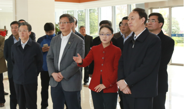 11月16日上午,在「2017中国(连云港)国际医药技术大会」召开期间,江苏省副省长马秋林,国家食品药品监督管理总局副局长、中国药学会理事长孙咸泽等领导视察豪森药业,省食品药品监督管理局局长莫宗通,连云港市市委书记杨省世,市委常委、开发区党工委书记曹卫东,市委秘书长王东升,副市长徐家保及相关部门负责人陪同考察。集团董事长钟慧娟女士向来访领导介绍了豪森药业的发展情况。