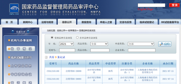 近日,翰森制药(3692.HK)旗下上海翰森生物医药科技有限公司自主研发的治疗用生物制品1类新药,注射用HS-20089和注射用HS-20093临床试验申请(IND)获得国家药品监督管理局受理承办并公示。