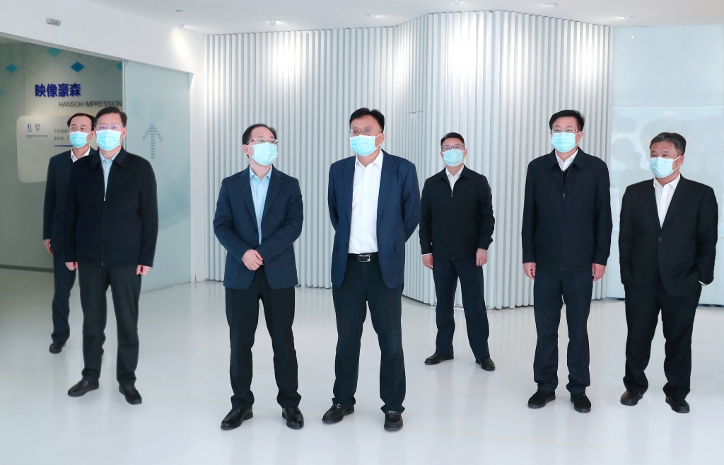 在豪森药业总裁吕爱锋的陪同下,胡广杰副省长参观了公司展厅,并听取了关于公司发展历程、科技创新、人才建设等情况的汇报。胡广杰详细调研了企业的产品结构、化学药和生物药研发布局,询问了新冠疫情对公司创新研发的影响、海外研发中心的配置,以及创新人才引进举措,并征求企业对政府的需求。