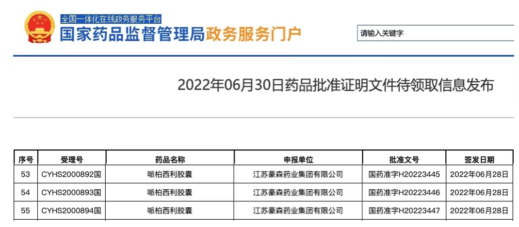 7月4日,翰森制药(股票代码:3692.HK)发布公告,其附属公司豪森药业开发的抗肿瘤药物--哌柏西利胶囊获得国家药品监督管理局(NMPA)颁发的药品注册证书,适用于激素受体(HR)阳性、人表皮生长因子受体2(HER2)阴性的局部晚期或转移性乳腺癌,与芳香化酶抑制剂联合使用作为绝经后女性患者的初始内分泌治疗。